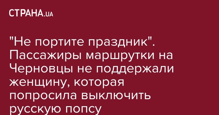 Водитель маршрутки "Кременец-Черновцы" отказался выключать российскую попсу. А женщина, которая попросила его это сделать, столкнулась с агрессией водителя и пассажиров. Видео об этом Инна Сан опубликовала на своей странице в Facebook.