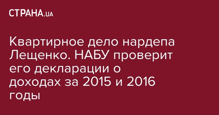 Квартирное дело нардепа Лещенко. НАБУ проверит его декларации о доходах за 2015 и 2016 годы