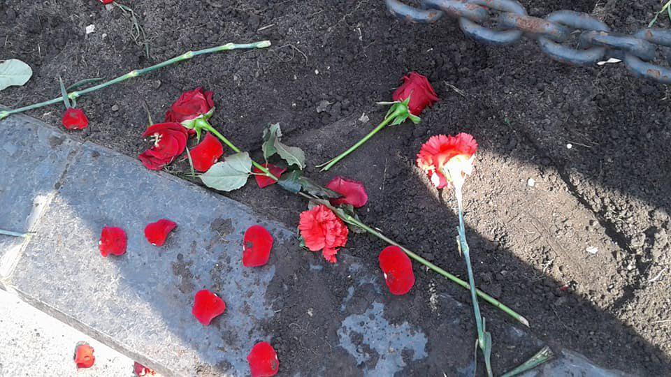 После акции, когда радикалы покинули Мариинский парк, кто-то положил гвоздику на залитую краской мемориальную доску.