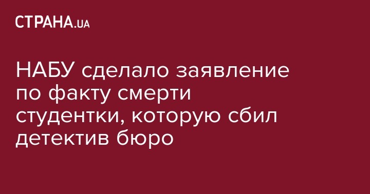 Руководитель подразделения детективов НАБУ совершил ДТП, в результате которого скончалась 23-летняя студентка киевского вуза. До этого девушка неделю пролежала в больнице, не выходя из комы. Об этом сообщает Совет общественного контроля НАБУ в своем заявлении.