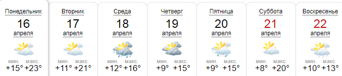 15 апреля, воскресенье   +23, переменная облачность.