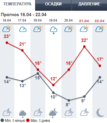 10 апреля, вторник          +22, ясно