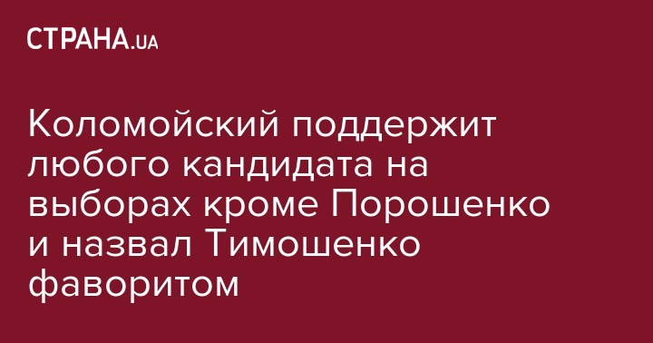 Олигарх Игорь Коломойский, совладелец группы "Приват" и телеканала 1+1 поддержит на будущих выборах президента Украины любого достойного кандидата, кроме нынешнего президента Петра Порошенко. Фаворитом гонки он читает лидера "Батькивщины" Юлию Тимошенко.