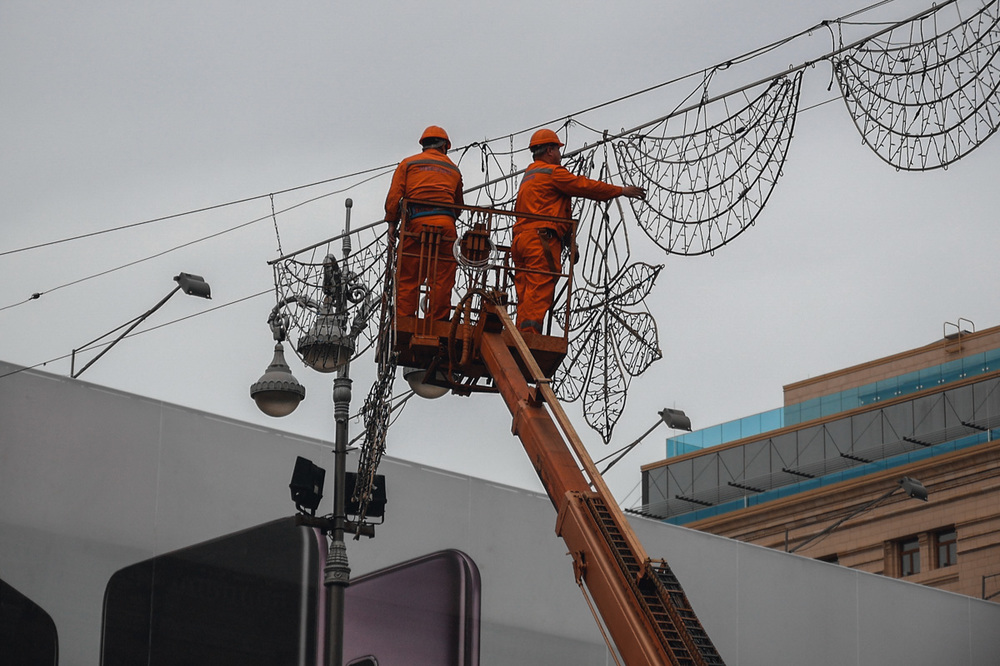 В Киеве на Крещатике коммунальщики при помощи спецтехники начали монтаж новой иллюминации. Об этом сообщает портал Информатор.