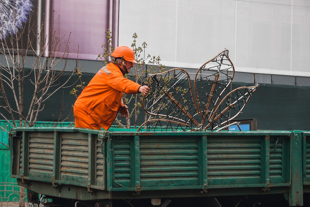 На Крещатике начали установку гербов и светящихся листьев каштана