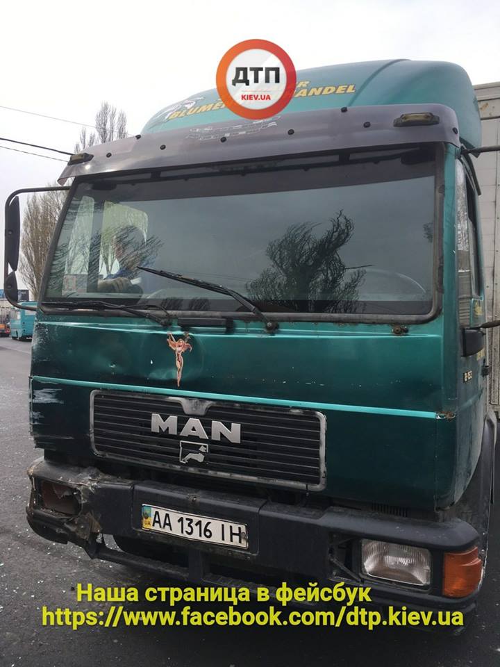В Киеве сегодня, 18 апреля, утром произошло ДТП с участием маршрутки №718 и грузовика. Авария случилась на улице Киевской в Софиевской Борщаговке на светофоре напротив Софиевского посада.