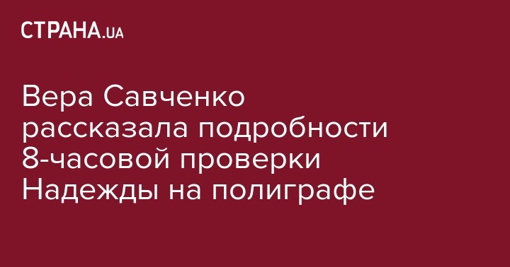 Вера Савченко рассказала подробности 8-часовой проверки Надежды на полиграфе