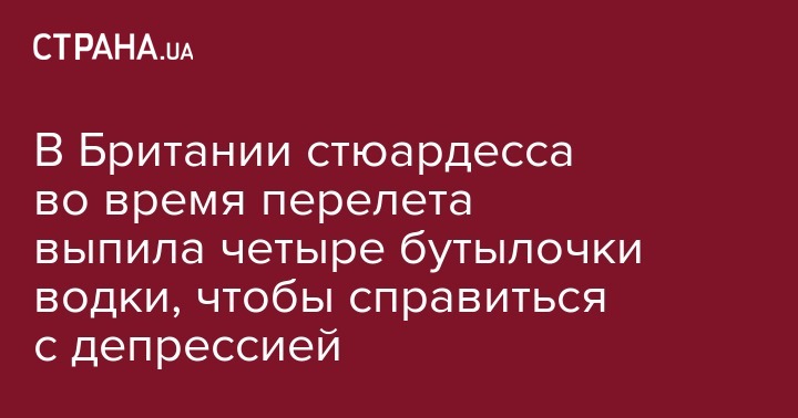 В Британии стюардесса во время перелета выпила четыре бутылочки водки, чтобы справиться с депрессией