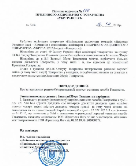 НАК "Нафтогаз" утвердил оценку стоимости ПАО "Укртрансгаз" на уровне почти 328 млрд гривен - 327,92 млрд грн.