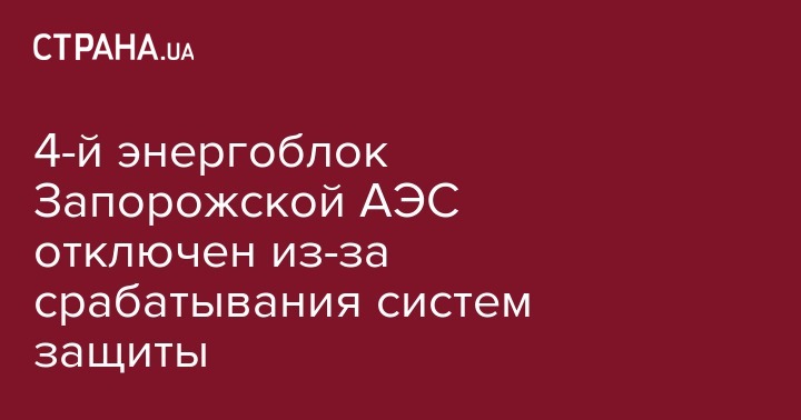 Четвертый энергоблок Запорожской АЭС 18 мая в 15:02 отключился от сети из-за срабатывания электрических защит. Об этом сообщает пресс-служба компании Энергоатом.