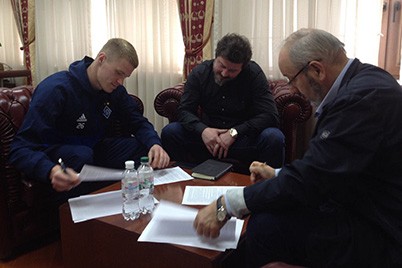"Очень рад, эмоции только положительные. Много работал ради того, чтобы играть в основном составе Динамо. Всегда отдавал и буду отдавать все силы ради команды, готов биться ради достижения результата. Играя за Динамо, уверен, буду с каждым днем прогрессировать, и надеюсь вырасти в хорошего защитника", – сказал футболист после того, как все подписи под официальными документами были поставлены.