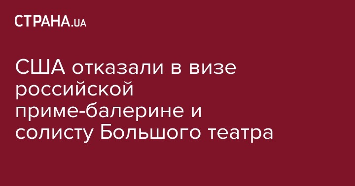 США отказали в предоставлении виз приме-балерине Большого театра Ольге Смирновой и первому солисту Якопо Тисси, которые должны были выступить на сцене Линкольн-центра в Нью-Йорке.