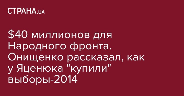 $40 миллионов для Народного фронта. Онищенко рассказал, как у Яценюка "купили" выборы-2014
