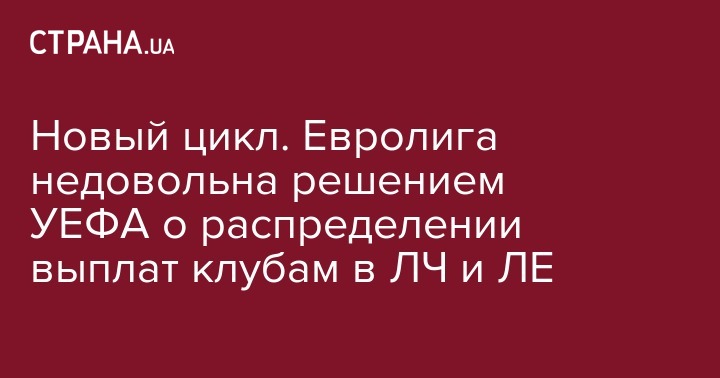 Новый цикл. Евролига недовольна решением УЕФА о распределении выплат клубам в ЛЧ и ЛЕ
