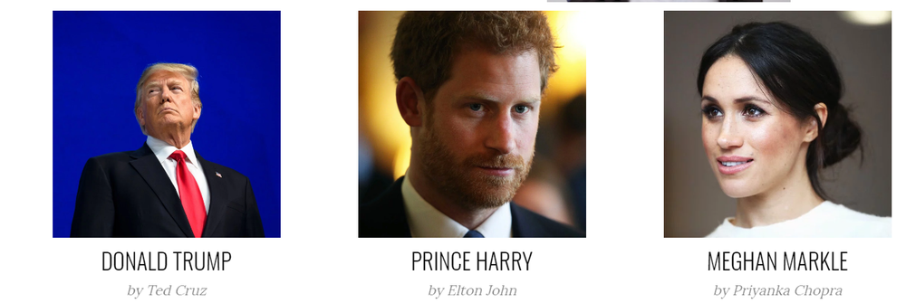 В категорию влиятельные "лидеры" также внесли президента Франции Эммануэля Макрона, главу КНР Си Цзиньпина, премьер-министра Канады Джастина Трюдо, наследного принца Саудовской Аравии Мохаммеда бин Салмана, премьер-министра Японии Синдзо Абэ, мэра Лондона Садока Хана, а также британского принца Гарри и его невесту Меган Маркл.