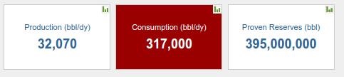 По данным Global Firepower, Украина каждый день добывает 32 тысячи баррелей, а потребляет 317 тысяч.