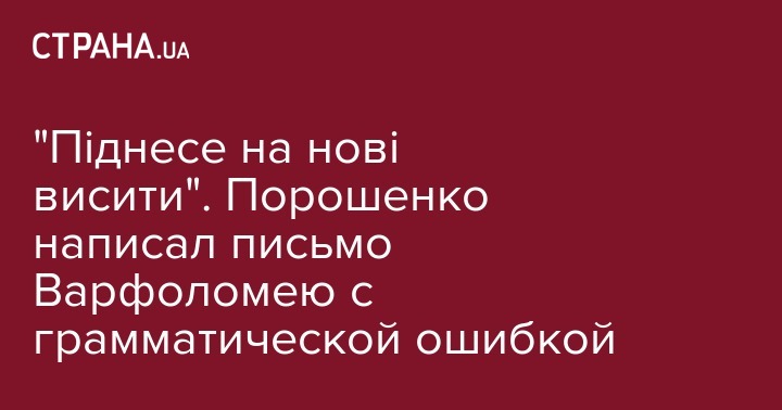 "Піднесе на нові висити". Порошенко написал письмо Варфоломею с грамматической ошибкой