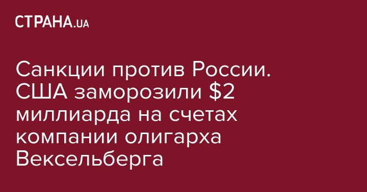 Так, долларовые активы компании олигарха "Ренова" оказались заморожены. Под блокировку попали банковские счета на сумму 1,5-2 млрд долларов.
