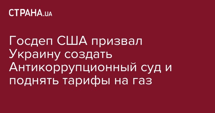 Государственный департамент США призвал власти Украины принять закон об Антикоррупционном суде и увеличить тарифы на газ, следуя рекомендациям МВФ.