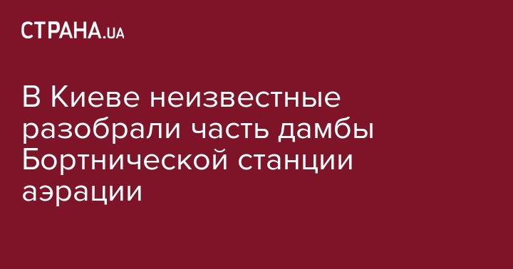 На выпускающем канале Бортнической станции аэрации на Осокорках в Киеве неизвестные разобрали часть дамбы, которая перекрывала прямой отток очищенной воды в Днепр.