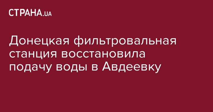 "По состоянию на 05:00 23 апреля водоснабжение населения Авдеевки (22 тыс. человек), с. Ласточкино и с. Орловка Ясиноватского района (1 тыс. 500 человек) восстановлено в полном объеме.