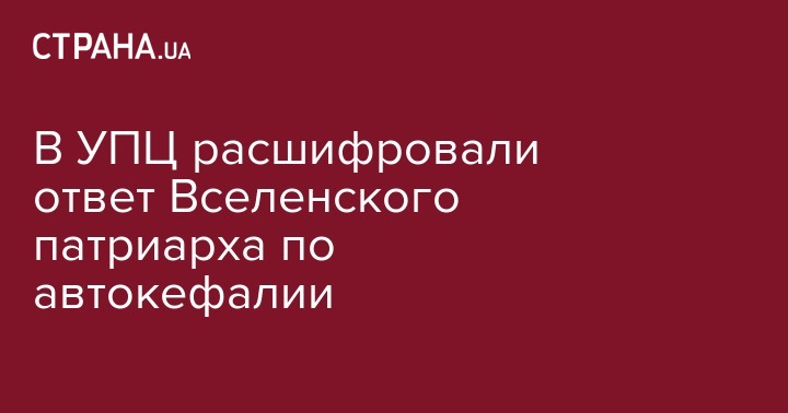 В УПЦ расшифровали ответ Вселенского патриарха по автокефалии