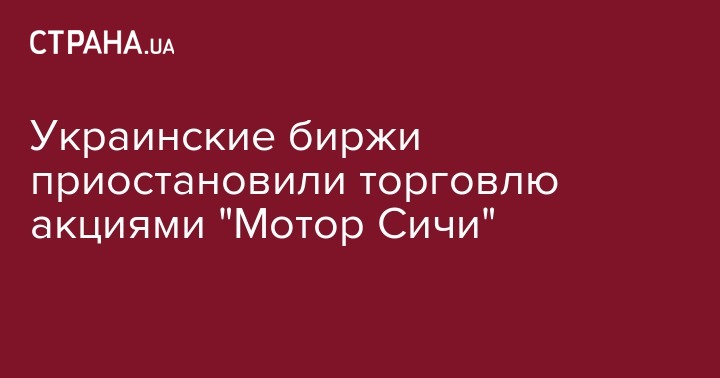 "Украинская биржа" и "Фондовая биржа ПФТС" прекратили торговлю акциями компании "Мотор Сич", где сейчас проводит обыски Служба безопасности Украины.