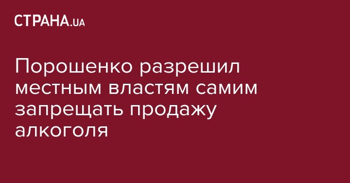 Президент Украины Петр Порошенко подписал закон, который предоставляет органам местного самоуправления право вводить запрет на продажу алкоголя в определенное время суток.