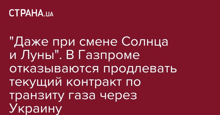 "Даже при смене Солнца и Луны". В Газпроме отказываются продлевать текущий контракт по транзиту газа через Украину