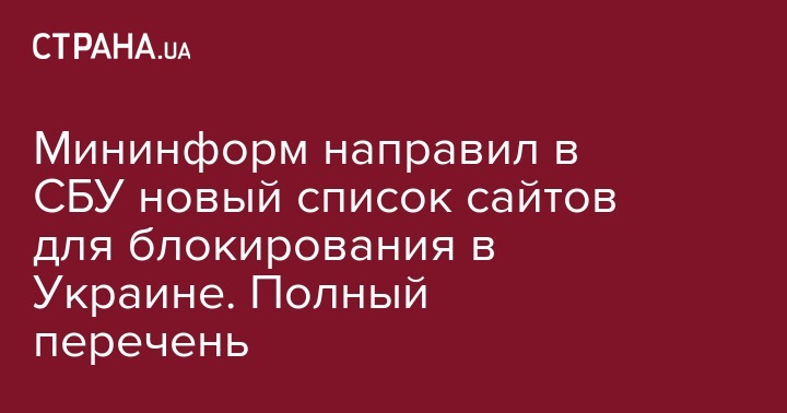 Министерство информационной политики Украины направило Службе безопасности Украины новый перечень сайтов, которые предлагает запретить в стране, говорится в ответе министерства на запрос агентства "Интерфакс-Украина".