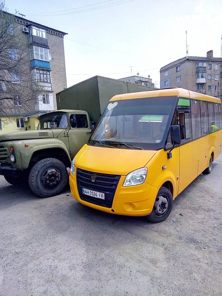 В Бахмуте Донецкой области маршрутка не пропустила военный грузовик. Фото