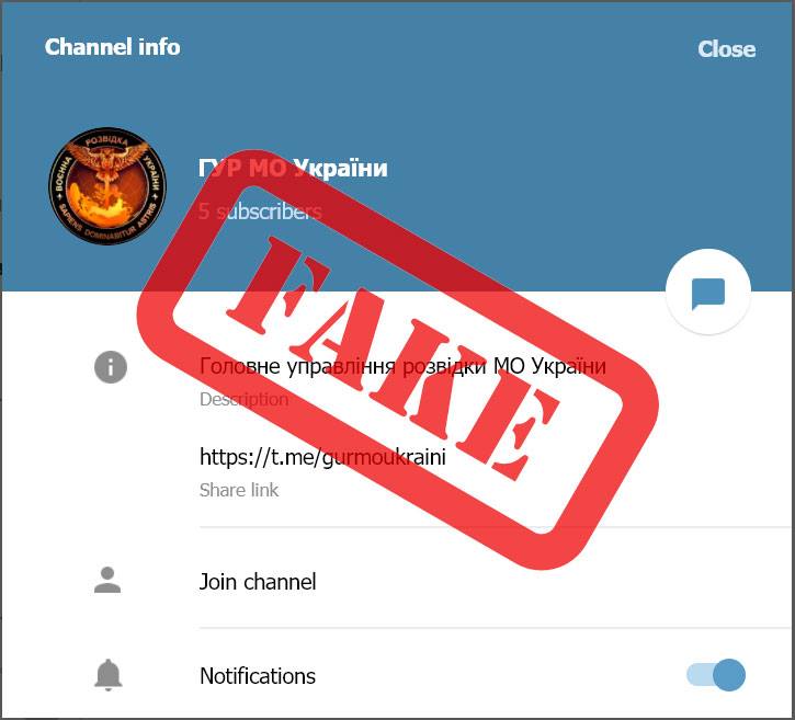 "В мессенджере Telegram создан канал, который якобы принадлежит ГУР МО Украины. Служба по связям с общественностью ГУР МО Украины уполномочена заявить, что указанный канал не принадлежит Главному управлению разведки Министерства обороны Украины. Размещенная в нем информация является фейковой и провокационной", - говорится в сообщении.