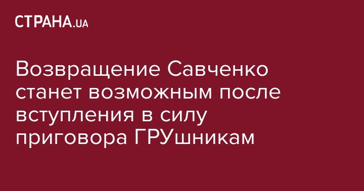 "Я хочу вас проинформировать, что 20 мая вступает в силу приговор официально против тех двух российских ГРУшников, которые приехали на территорию Украины убивать украинцев, и мы надеемся, что вступление в силу приговора также откроет путь для того, чтобы в ближайшее время наша коллега, Героиня Украины Надежда Савченко также возвратилась в Украину", - сказала Ирина Геращенко на брифинге в Верховной Раде.