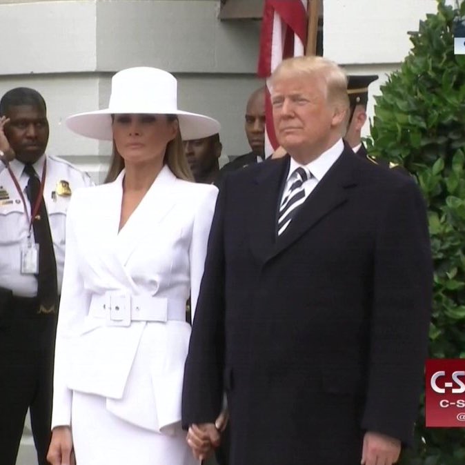 Некоторые сравнивали головной убор с шляпой Бейонсе в клипе Formation, другие увидели сходство с героем Джуда Лоу в сериале "Молодой папа". В любом случае, Мелания Трамп, в очередной раз не угодила "модельерам" из сетей.