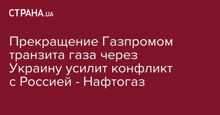 Прекращение Газпромом транзита газа через Украину усилит конфликт с Россией - Нафтогаз