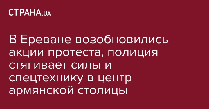 На возобновившиеся акции протеста отреагировала армянская полиция, которая начала стягивать в центр Еревана силы и спецтехнику.