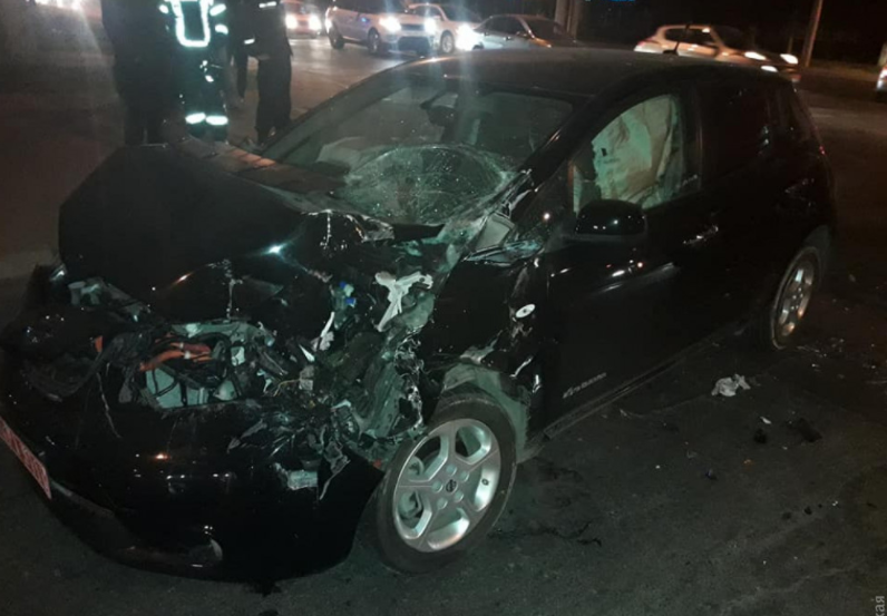 В Одессе пожарная машина смяла в ДТП электромобиль Nissan