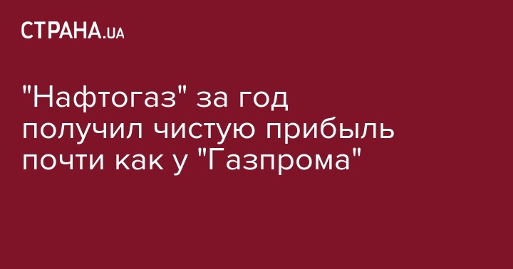 Прибыль "Нафтогаза" почти сравнялась с прибылью российского монополиста компании "Газпром", который отчитался о прибыли в 100,3 млрд рублей, что по текущему курсу равно $1,63 млрд.