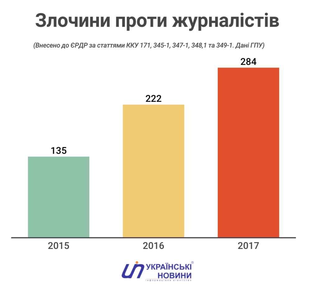 В тоже время, данные Генпрокуратуры разительно отличаются от этих оценок. Так, количество преступлений, совершаемых против журналистов, по данным ГПУ, с каждым годом только растет.