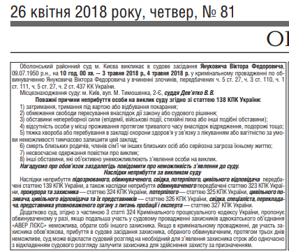 Януковича вызывают 3-4 мая в Оболонский суд повесткой в газете