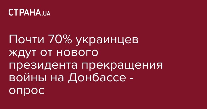 После президентских выборов в Украине 67% граждан ожидают от нового главы государства прекращения военных действий на Востоке. Об этом свидетельствуют результаты исследования, проведенного Социологической группой "Рейтинг".