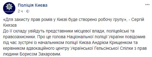 Национальная полиция, в свою очередь, сообщила, что для защиты прав ромов в Киеве будет создана рабочая группа. В ее состав войдут представители местной власти, полицейские и правозащитники.