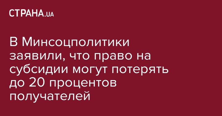 В Минсоцполитики заявили, что право на субсидии могут потерять до 20 процентов получателей