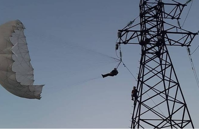 Недалеко от Коломыи в Ивано-Франковской области парашютист запутался в проводах на опоре ЛЭП.