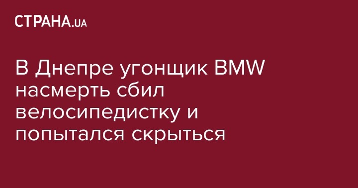 Сегодня, 30 апреля, на улице Киевской в Днeпре неизвестный угнал автомобиль BMW. Спустя полчаса на Криворожской трассе этот злоумышленник насмерть сбил женщину.