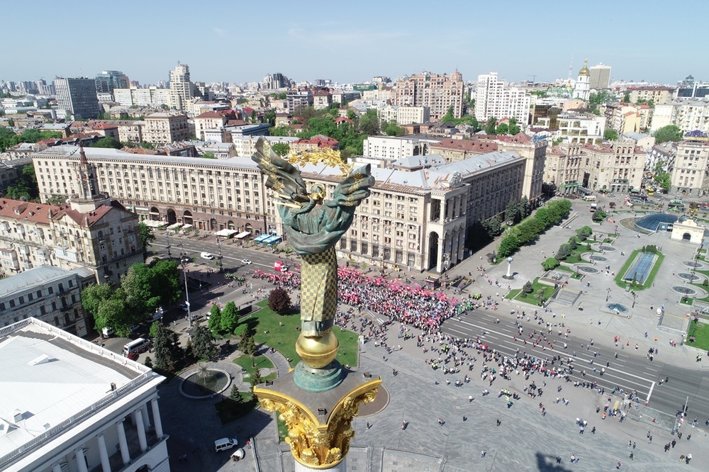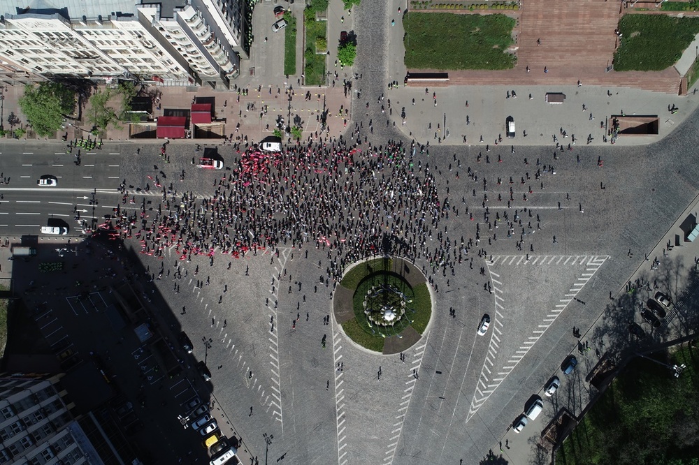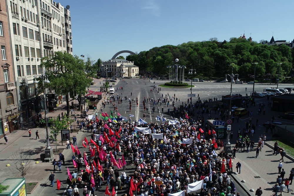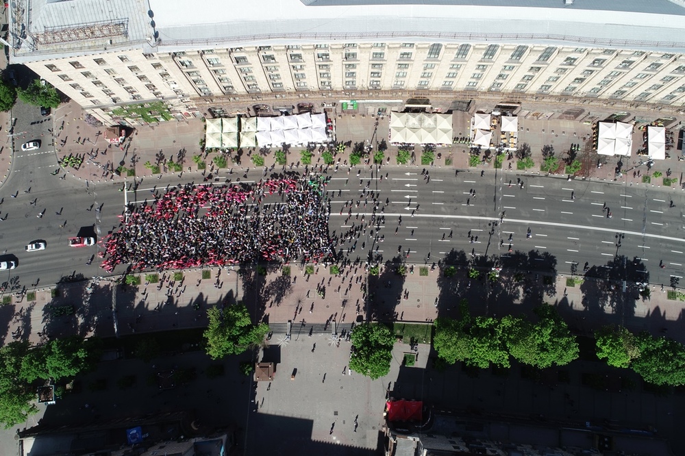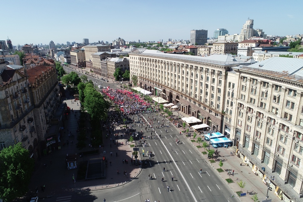 С высоты строй выглядел хаотично. Организатором марша выступили Социалистическая партия Украины и народный депутат Сергей Каплин. Сбор на марш прошел возле метро "Крещатик" в 10:00. Затем колонна направилась на Европейскую площадь.