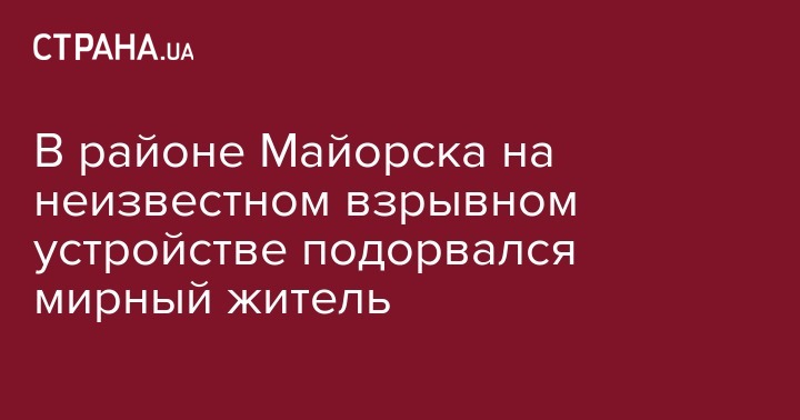 Около 12.30, 1 мая, в районе населенного пункта Майорск (подконтрольная часть ООС) на неизвестном взрывном устройстве подорвался мирный житель. Угрозы его жизни в настоящее время нет.
