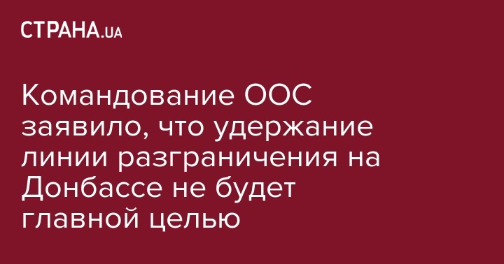 Генерал-лейтенант Сергей Наев заявил, что для него, как для Командующего Объединенных сил (которое пришло на смену АТО на Донбассе, - Прим.Ред.), удержание линии разграничения не будет главной миссией.