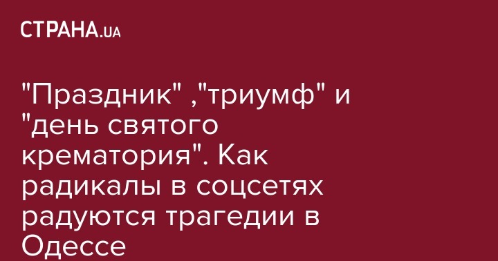 Сегодня, когда в Одессе чтят четвертую годовщину трагических событий 2 мая 2014 года, националисты в соцсетях вспоминают свой "триумф" и на полном серьезе заявляют о "празднике".