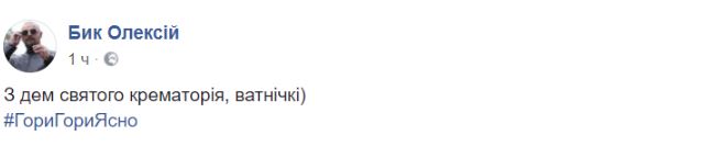 Активист "Правого сектора" Алексей Бык, избивший журналиста Руслана Коцабу, назвал трагедию 2 мая "днем святого крематория" и присовокупил хештег #ГориГориЯсно.